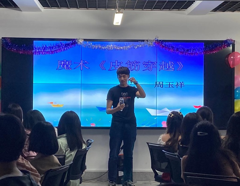 此外,本次活动组织了“击鼓传花”、“疯狂猜歌名”以及“你来比划我来猜”这三个游戏。“击鼓传花”环节,在主持人张鑫鹏同学的引导下,大家玩得不亦乐乎;此外,有的同学在“疯狂猜歌名”这个游戏中展现了自己的实力,成功获得了一等奖,并获得了相应的奖品;最后一个是经典的“你来比划我来猜”游戏,多组同学参与其中,不断融入游戏的快乐氛围中。